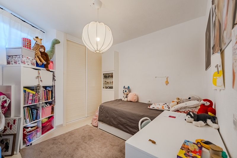 La vivienda cuenta con 77,5 m² interiores, distribuidos de forma funcional. Dispone de dos dormitorios, aunque actualmente el segundo ha sido reformado como vestidor, aportando un espacio extra de organización y confort al dormitorio principal.
