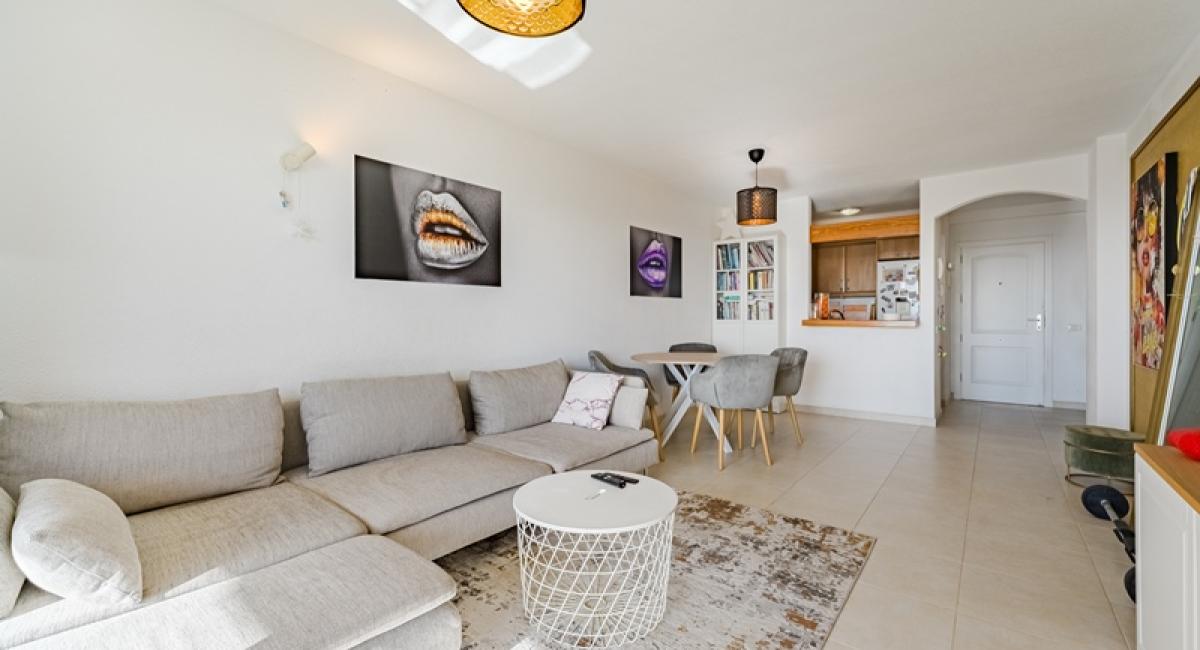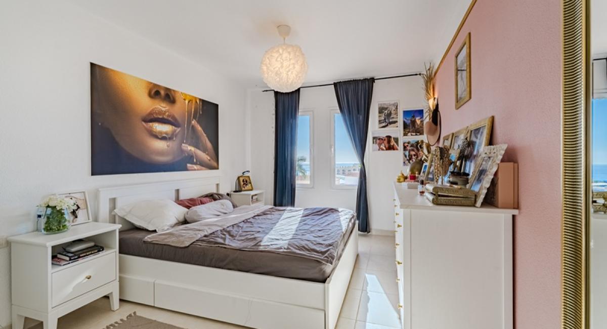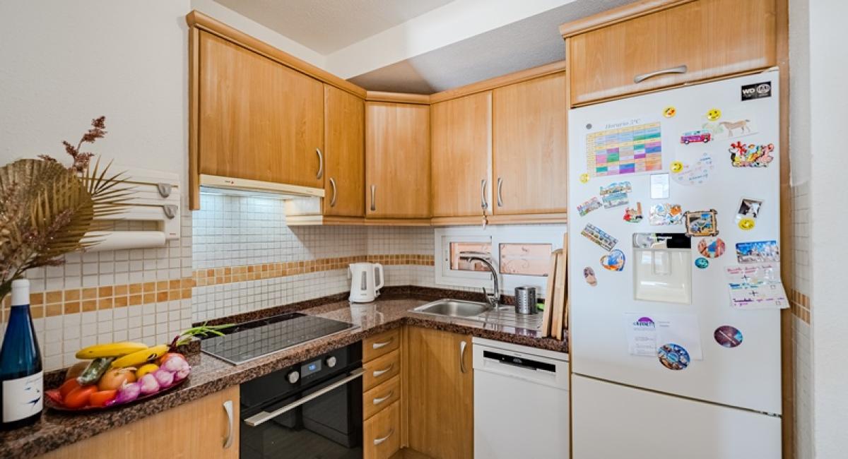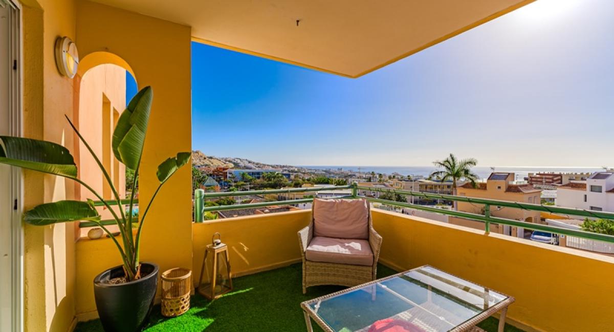 La vivienda cuenta con 73 m² interiores distribuidos en 2 dormitorios y 2 baños, además de una moderna cocina abierta integrada en el salón-comedor, creando un espacio amplio, luminoso y funcional. Desde el salón se accede a una agradable terraza de 11 m² con vistas al mar, ideal para disfrutar del excelente clima del sur de Tenerife durante todo el año.
