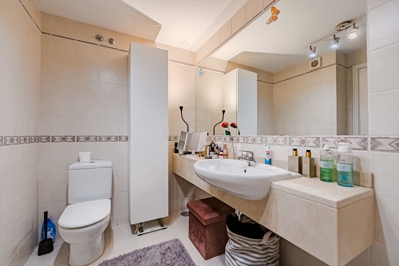 La vivienda cuenta con 77,5 m² interiores, distribuidos de forma funcional. Dispone de dos dormitorios, aunque actualmente el segundo ha sido reformado como vestidor, aportando un espacio extra de organización y confort al dormitorio principal.