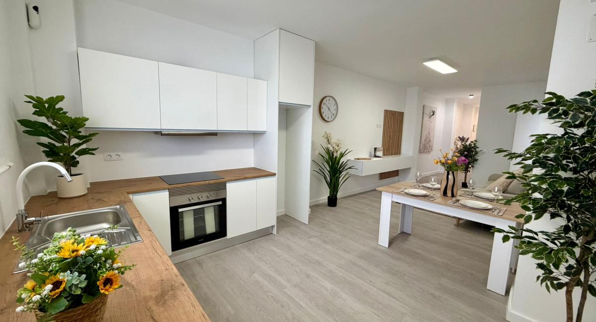 Con una distribución moderna, el salón comedor se integra con una cocina completamente nueva, creando un espacio acogedor y funcional. El piso cuenta con tres amplios dormitorios, perfectos para familias o para quienes buscan un espacio extra para trabajar o recibir visitas. Además, dispone de un baño completo y un aseo, todo en excelente estado y listo para estrenar.